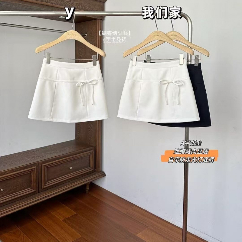 miu系蝴蝶结西装半身裙女2025春季新款防走光a字包臀裙白色短裙子