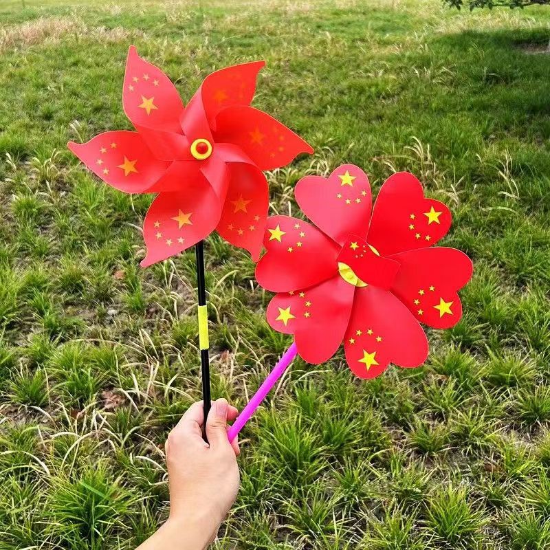 国慶節の日の学生の贈り物五角星紅旗風車運動会の道具の屋外の子供のおもちゃの卸売り