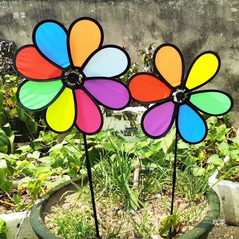 工場卸売り七彩回転風車屋外玩具児童車載スケートボード自転車ベビーカートバックル風車