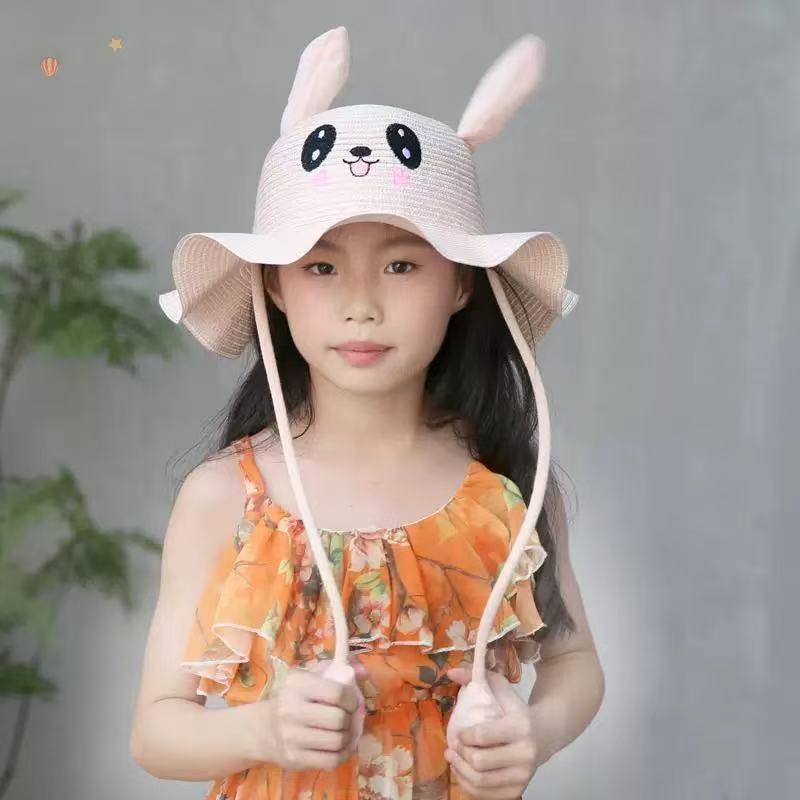 卸売麦わら帽子インターネット有名人夏旅行日焼け止め帽子薄い日焼け止めサンシェードエアバッグウサギが動く漫画麦わら帽子