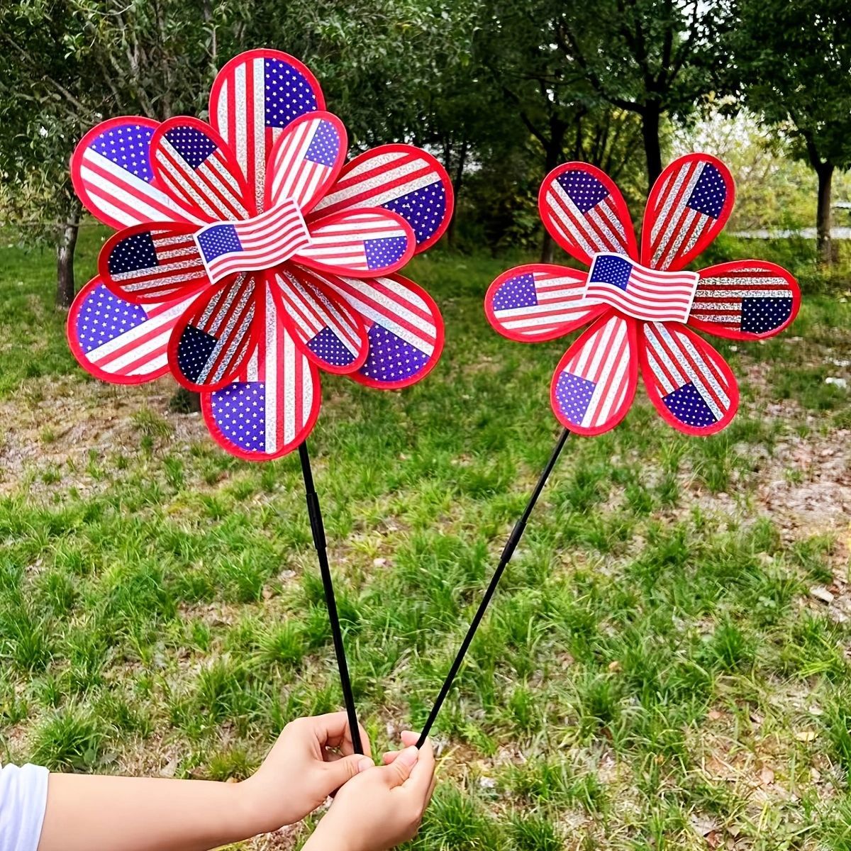 国境を越えた卸売二層スパンコール風車庭の芝生の地面に挿入された中庭の装飾独立記念日アメリカ国旗大型風車