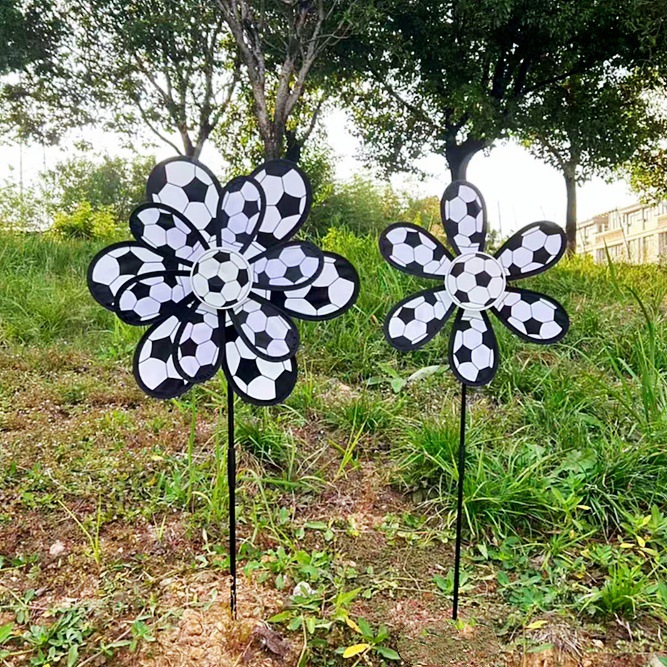 クロスボーダー熱売二重布芸サッカー風車屋外庭園装飾児童学校運動会大風車卸売り