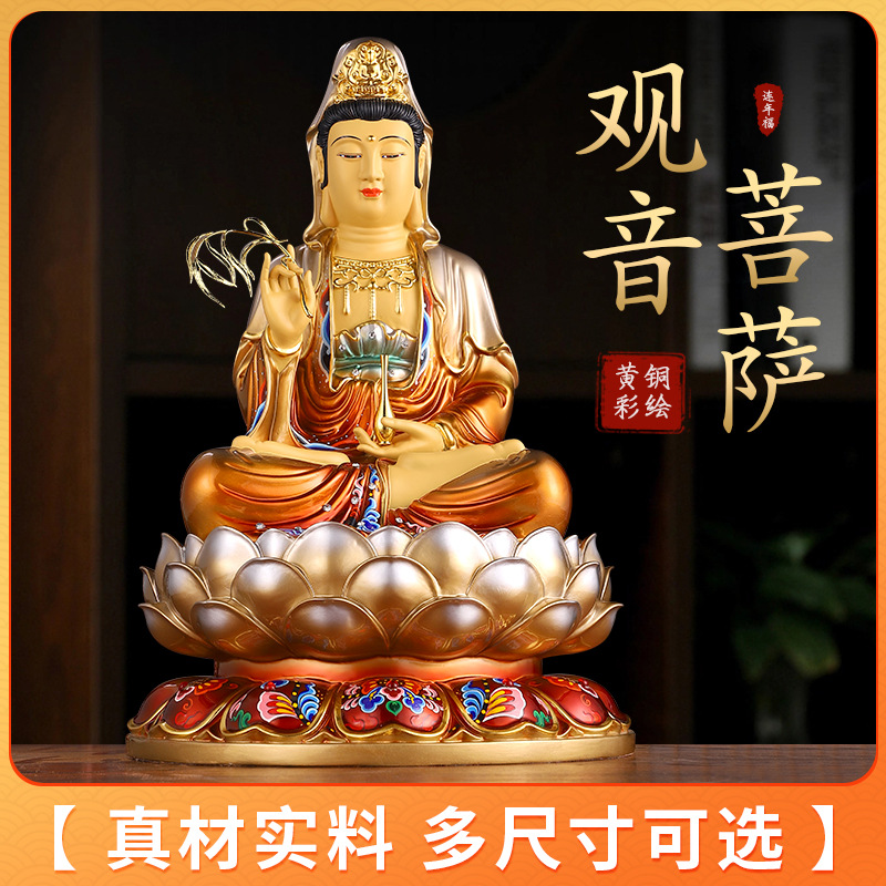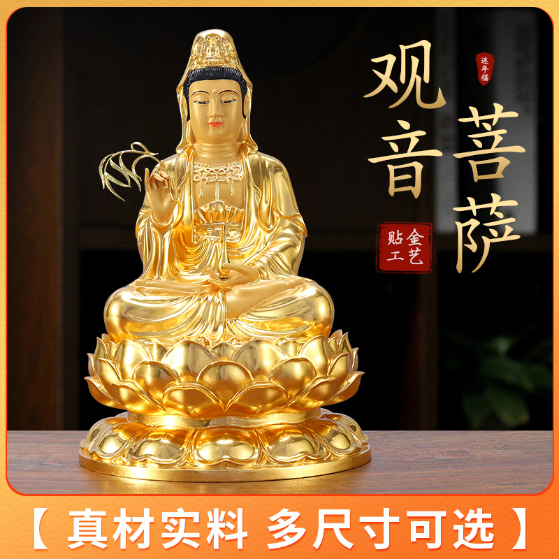 観音菩薩の家庭用観音仏像を供える客間黄銅座蓮観世音送子工芸品銅像置物