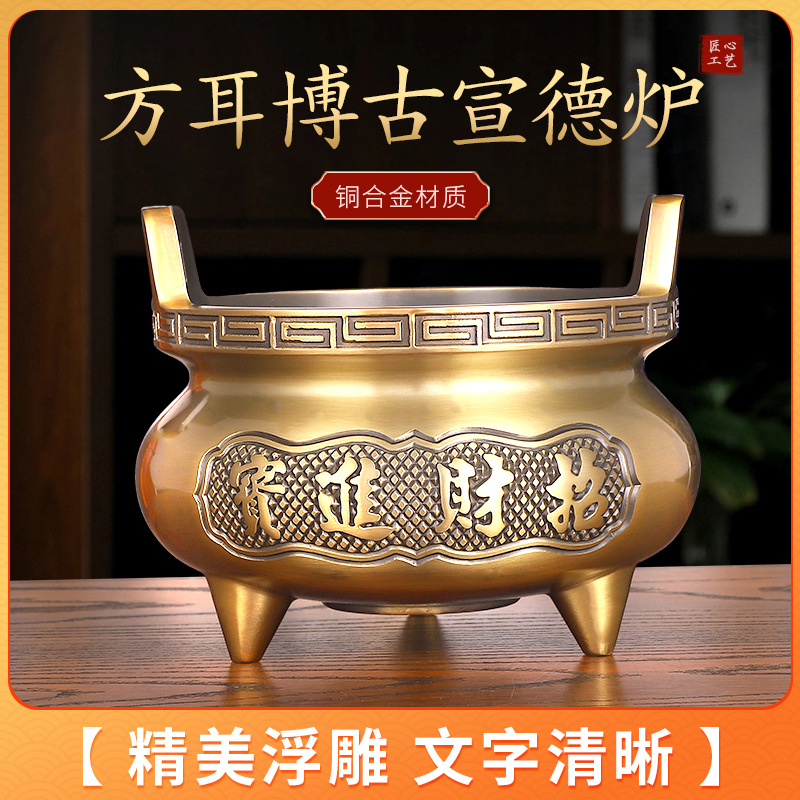 銅合金香炉家庭用供養香炉方耳博古宣徳炉招財入宝大サイズ室内焼香炉