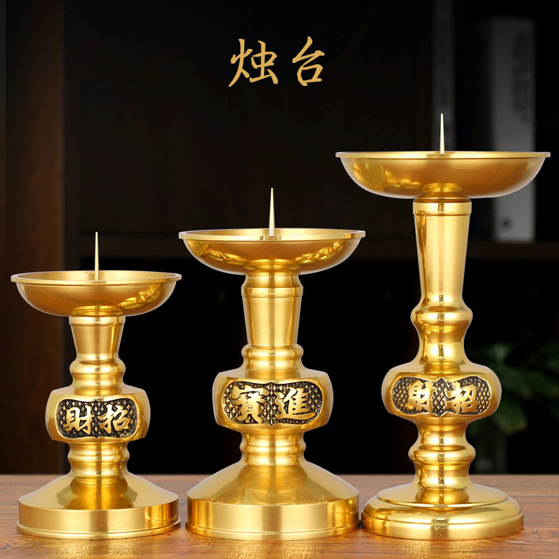 供仏中国式銅燭台招財洋ろうそく針燭台家庭用供養結婚用ろうそく台両用ショートニング灯台