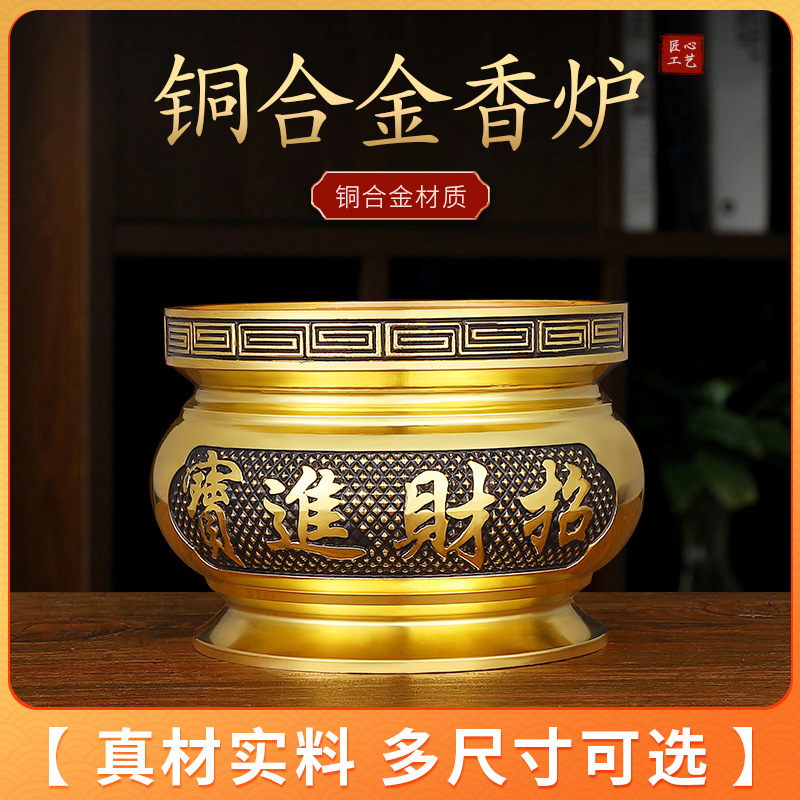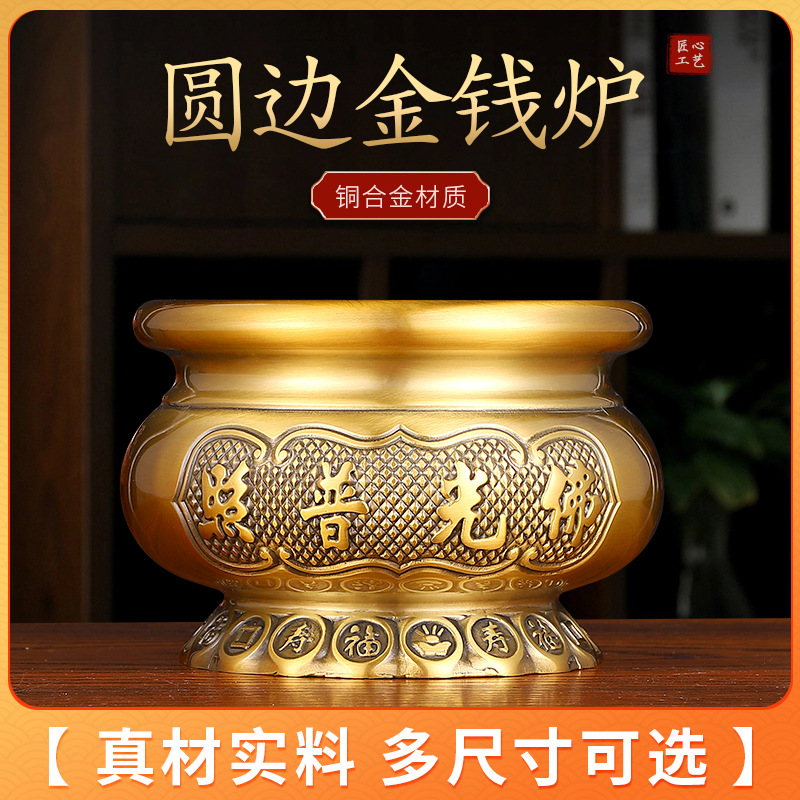 金銭円辺炉室内家庭用銅合金招財香炉財神供養仏具寺院礼仏焼香炉