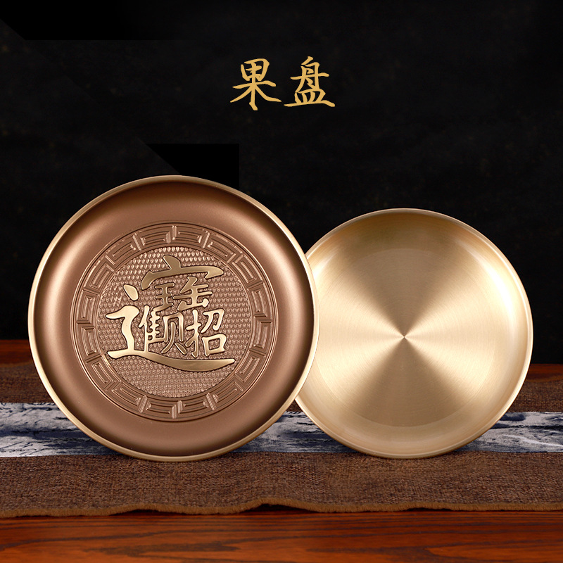 メーカーの銅製フルーツプレート、フルーツプレート、真鍮プレーン起毛サービングプレート、寺院のタデ、サービングテーブル、フルーツプレート、サービングフルーツプレート