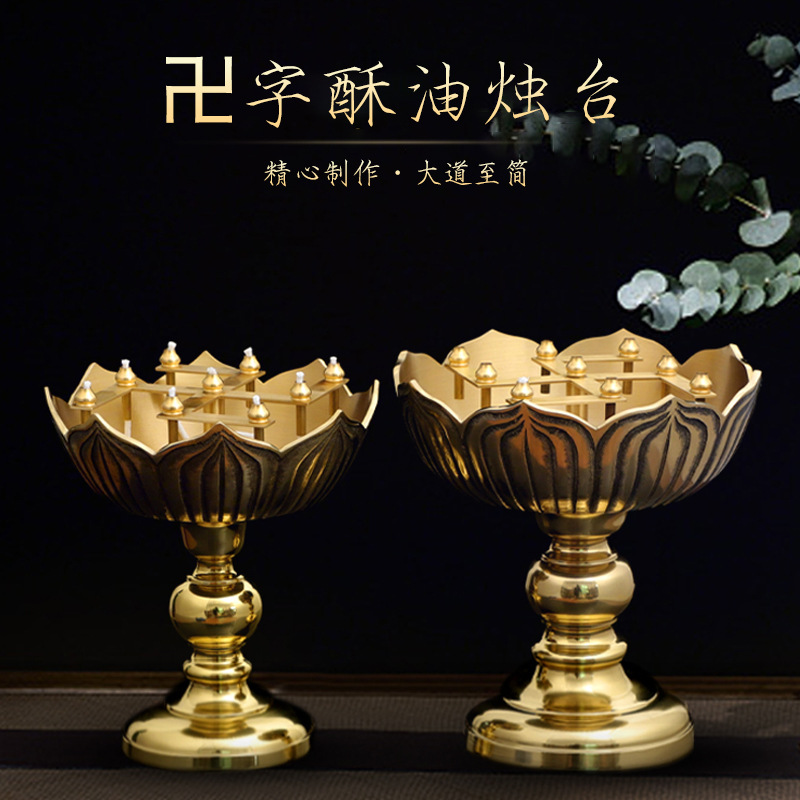 卍字のメレンゲの燭台の蓮のランプの純銅の家庭用のメレンゲのろうそくの燭台は長い明かりの寺院を供えて明かりを供えます。