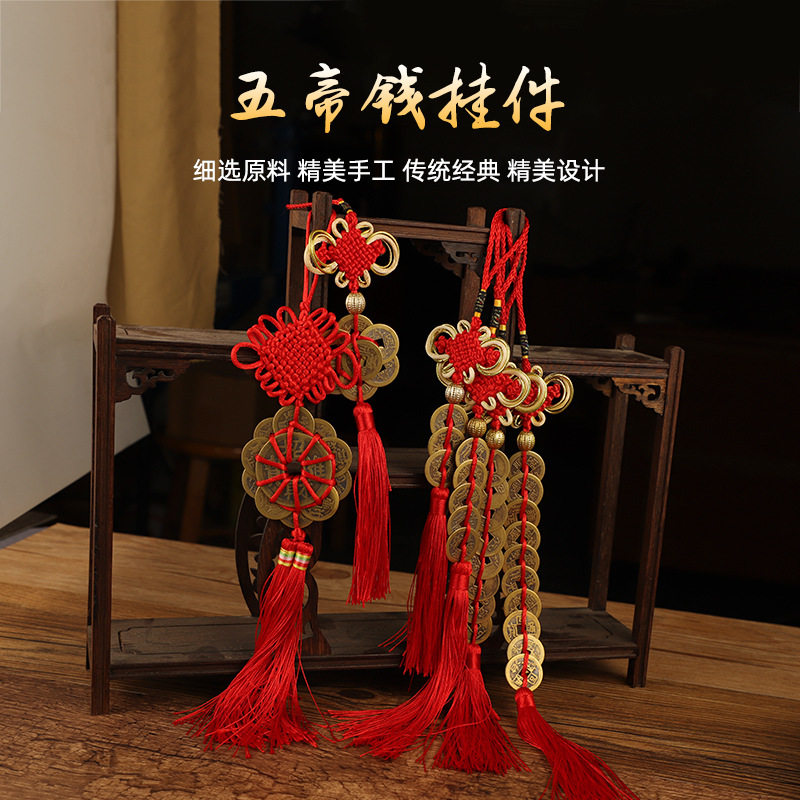 メーカー直営五帝銅銭ストラップは古銅の硬貨の客間に似せて風水の置物を飾っています。