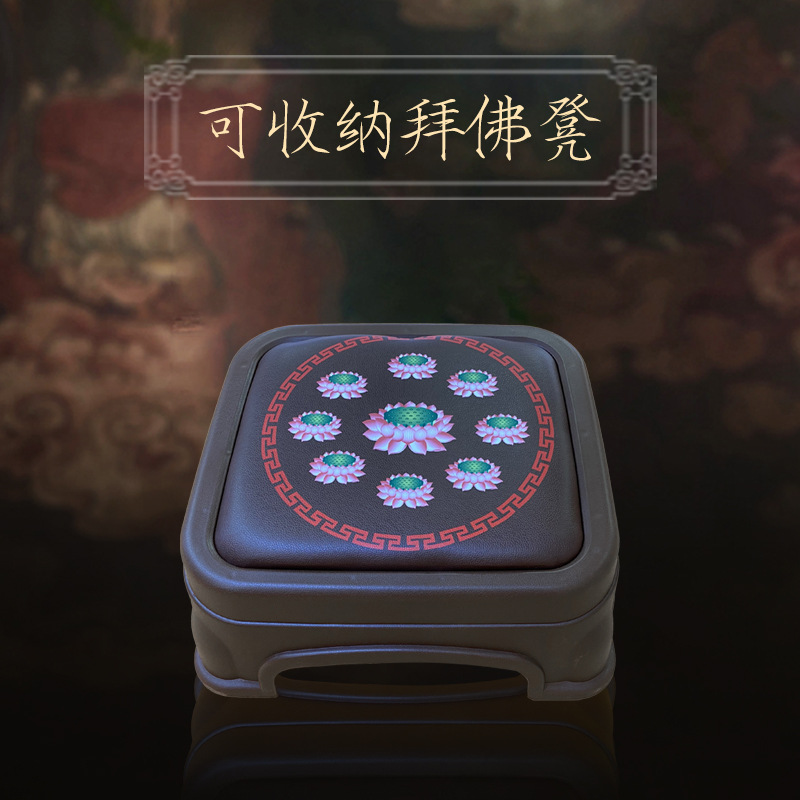 プラスチックのベンチを拝んで、頭を下げて、四角形のお寺の祠堂を敷きます。
