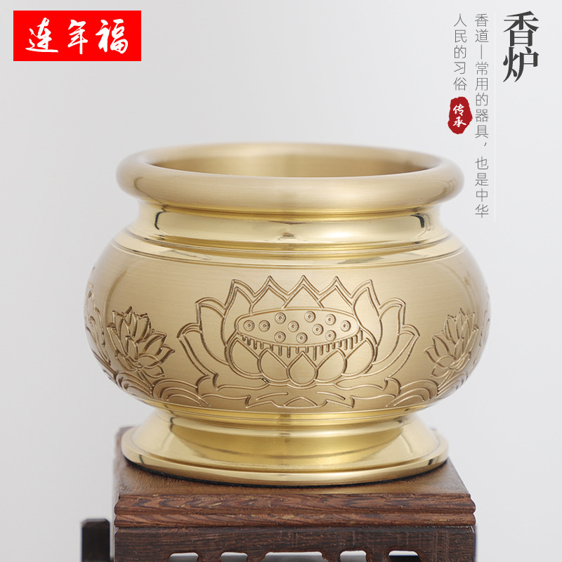 全銅香炉金色彫刻家庭用観音挿香炉祠堂寺院用品焼香挿香香炉現物