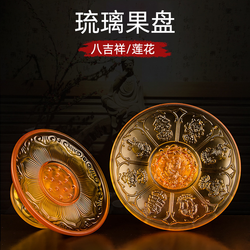 中国式瑠璃果物皿八吉祥蓮果物供給皿家庭用室内貢皿供給用品卸売り