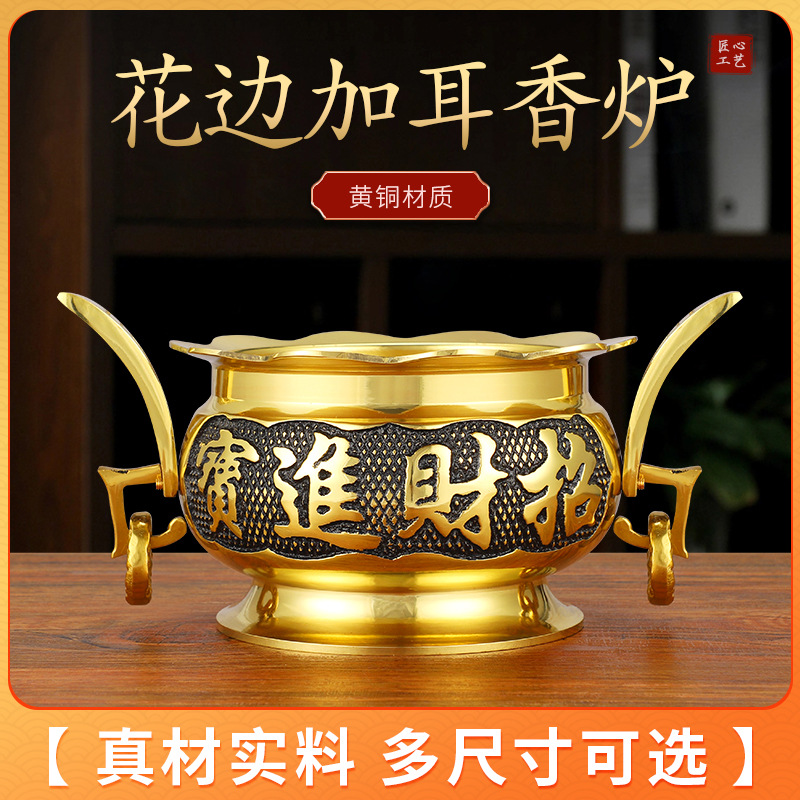 銅香炉祠堂用品双耳香炉家庭用香挿寺寺祠堂トランペット香焼香炉挿香用品