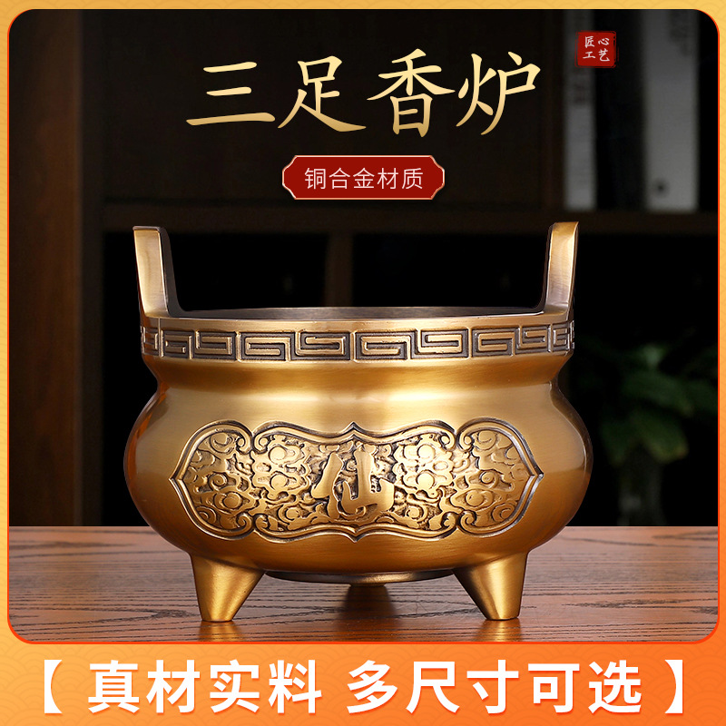 家庭用室内供養招財上香炉銅合金大サイズ供仏置物香薫炉三足香炉挿し香