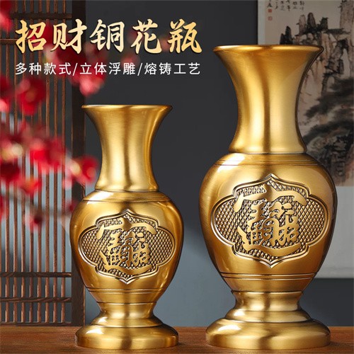 純黄銅合金招財花瓶家庭装飾置物仏前供観音仏堂生け花浄水筒供仏