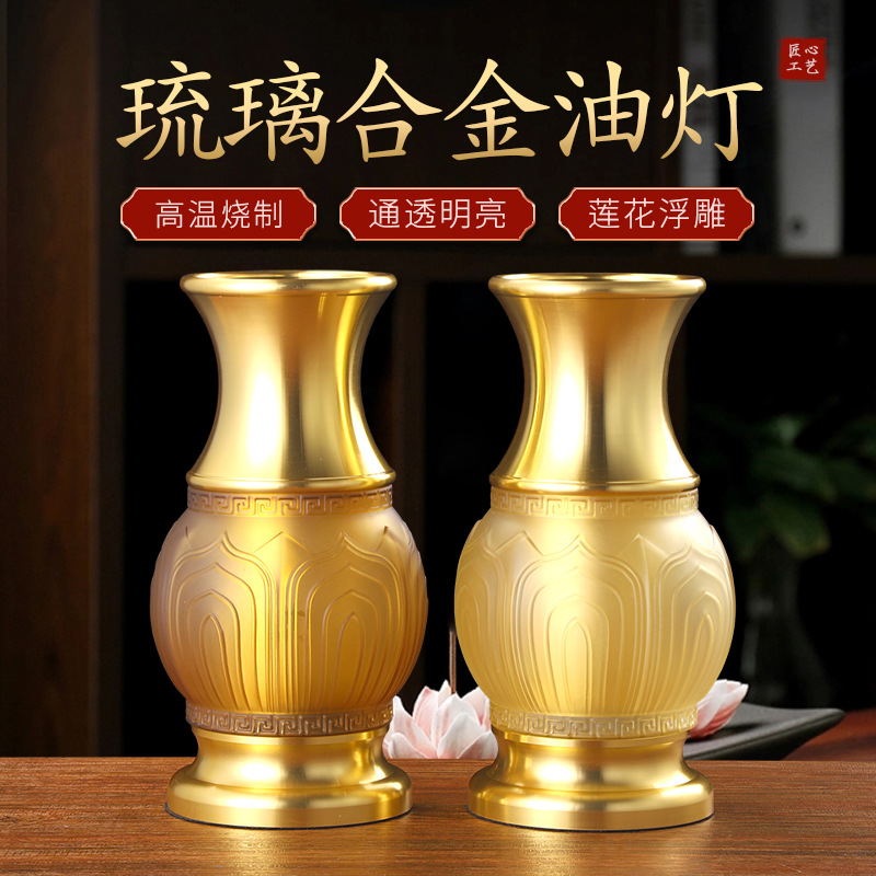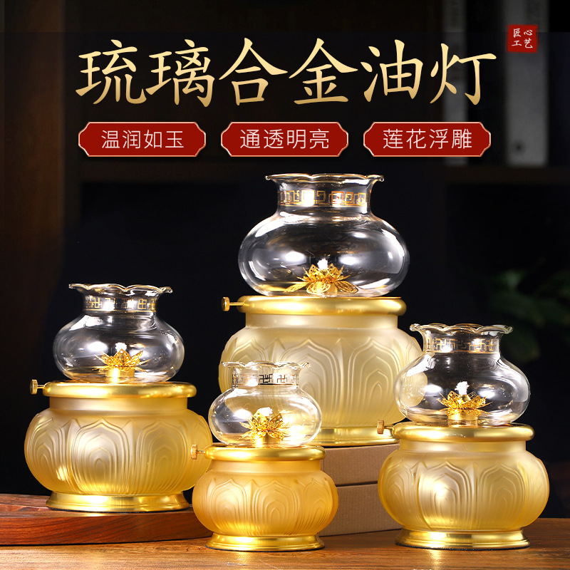 供仏瑠璃合金灯家庭用観音蓮メレンゲ灯仏堂液体油灯杯防風仏前供灯