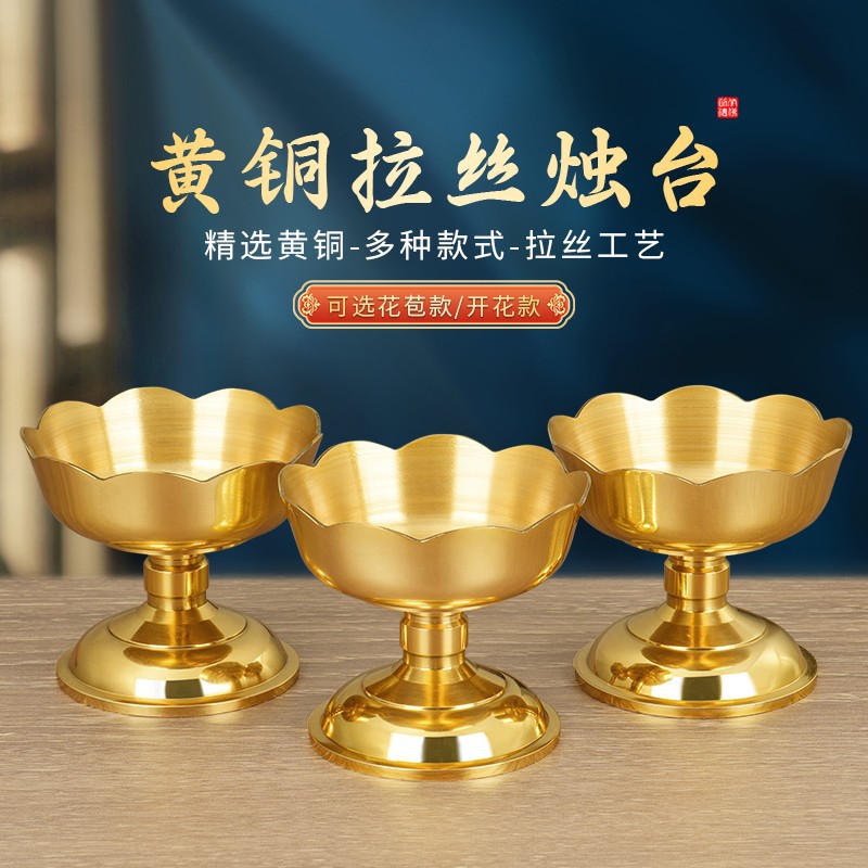 純粋な黄銅の燭台の仏堂の家庭用の上でショートニングの灯台の蓮のろうそくの燭台の菩薩の長い明かりに供えて用品を供えます。