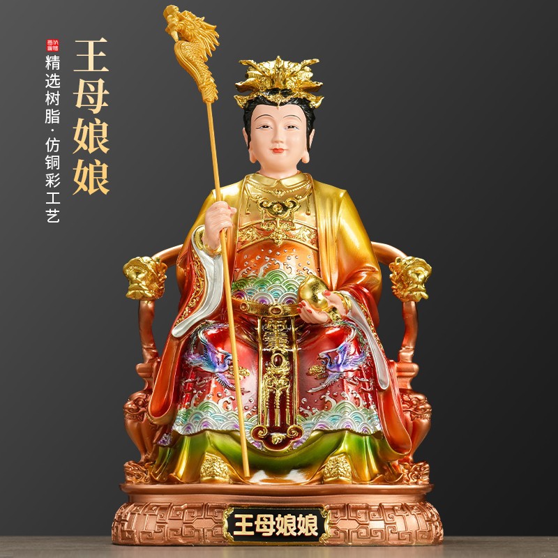 模造銅彩王母母像体真身瑶池金母神像仏堂家庭用礼仏供養樹脂置物