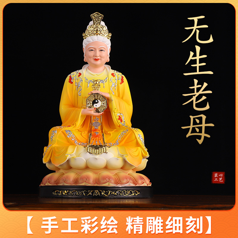 現物彩色絵樹脂無生老母瑶池金母神像置物道家山老母聖母家庭用供養