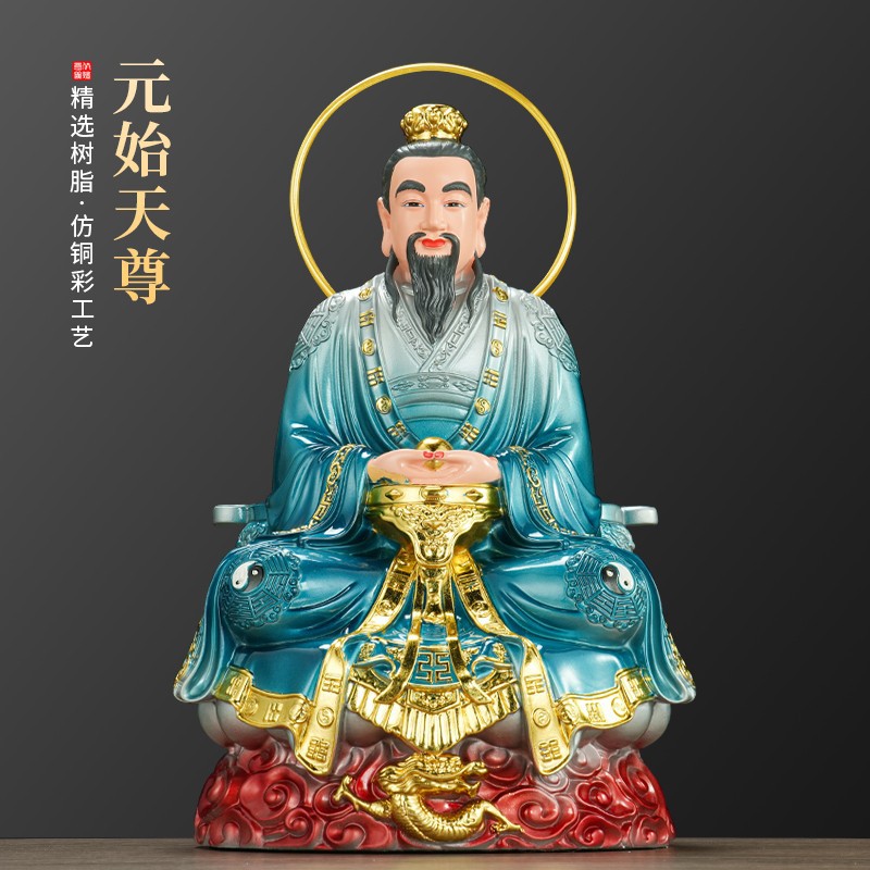 玉清元始天尊彩色絵樹脂太上老君道徳霊宝天尊家庭用供養仙家置物仏像