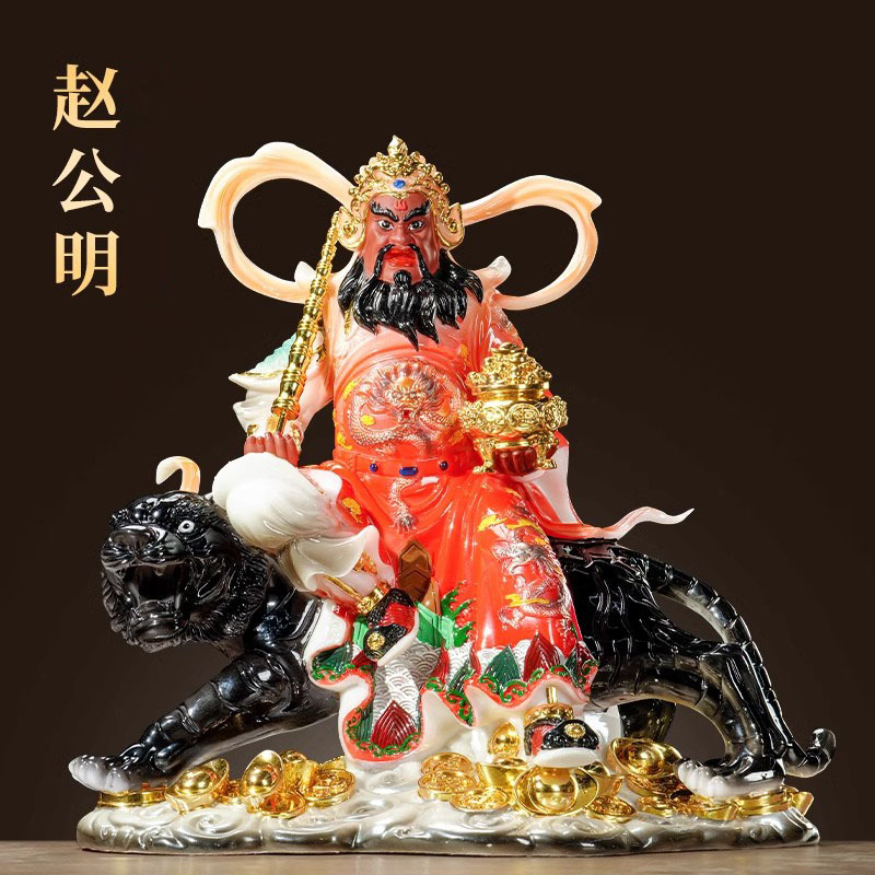 武財神爺趙公明神像置物家庭用供養騎黒虎精鋳漢白玉仏像趙公元帥