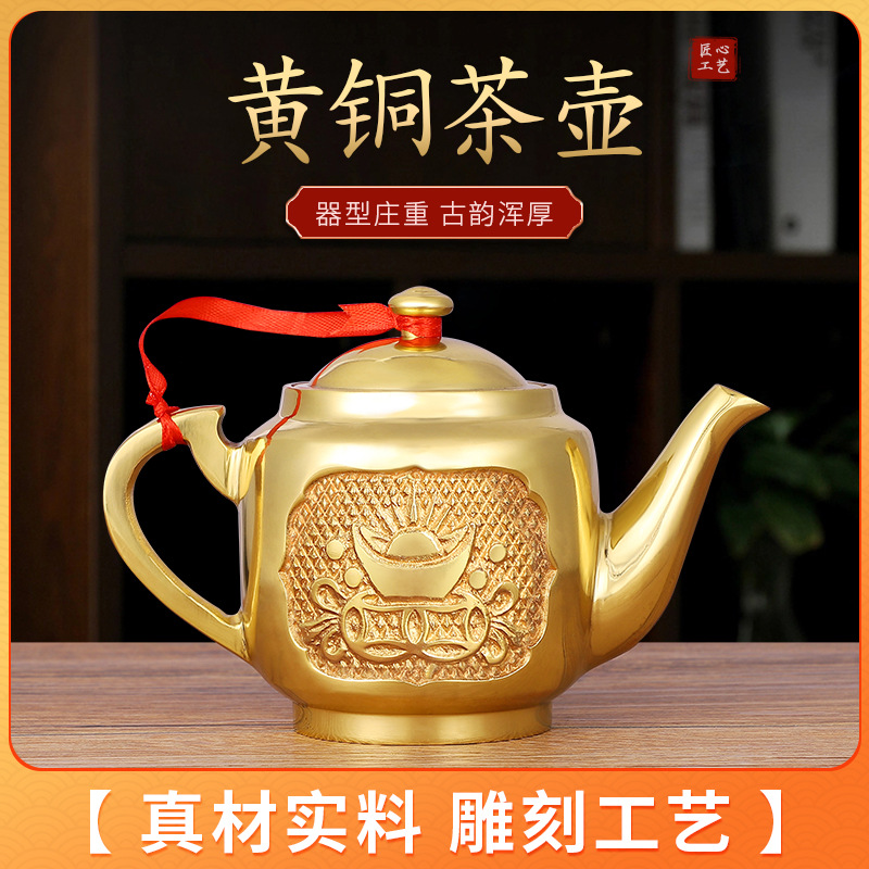 真鍮のティーポットの置物創意的なティーポット工芸品の置物家庭用お寺に仏像ティーポットの置物卸売りを供えます。