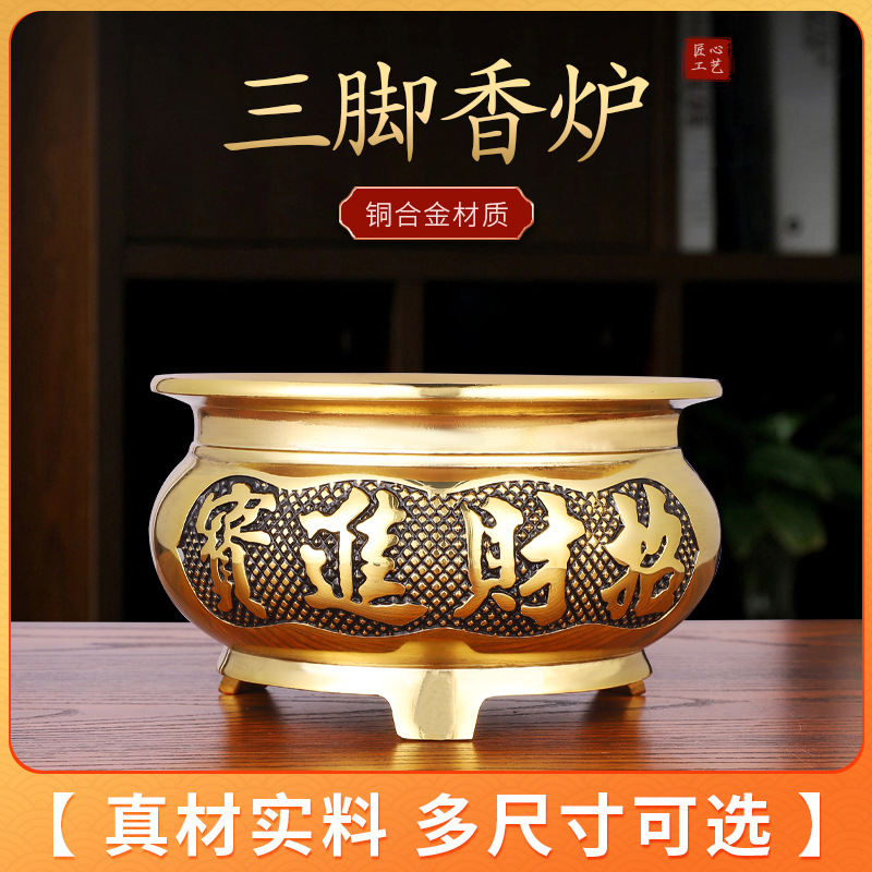 銅合金香炉家庭用お供え焼香炉仏立香大辺三脚香炉招財進宝三足香炉