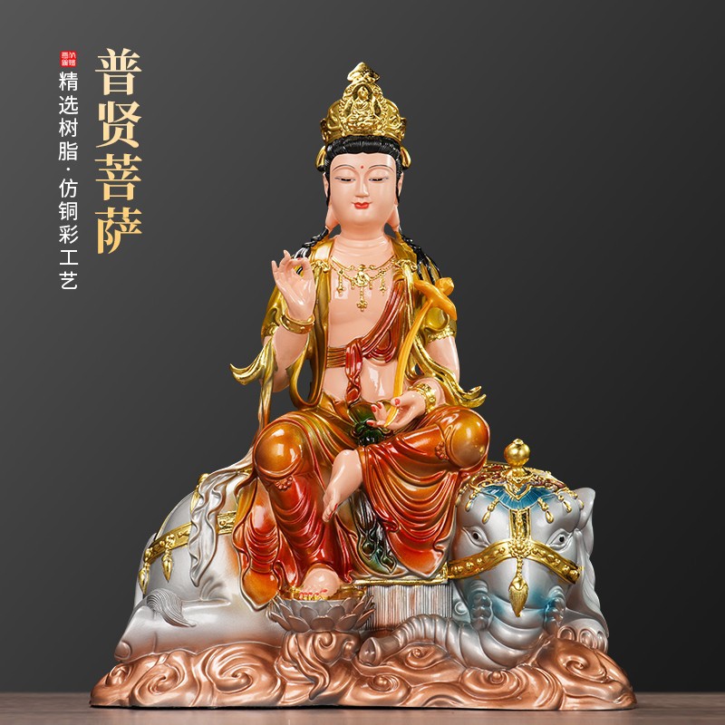 普賢菩薩の神像樹脂の置物華厳三聖仏像仏堂の礼仏家庭用室内の銅の工芸