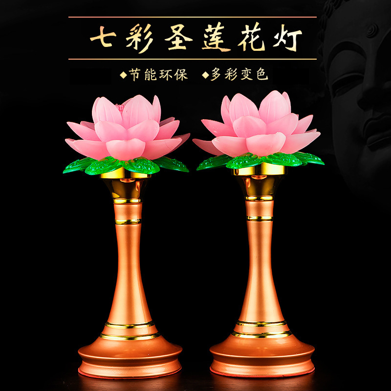 蓮花灯長明灯led七色瑠璃供灯一対の家庭祠堂供養置物仏堂瑠璃灯