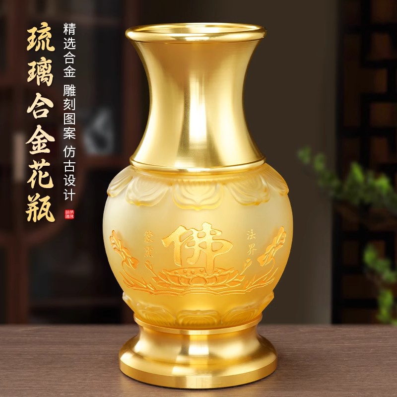 屋内仏殿の祭器模造ガラス合金レリーフ蓮観音花瓶家の装飾仏陀の礼拝卸売