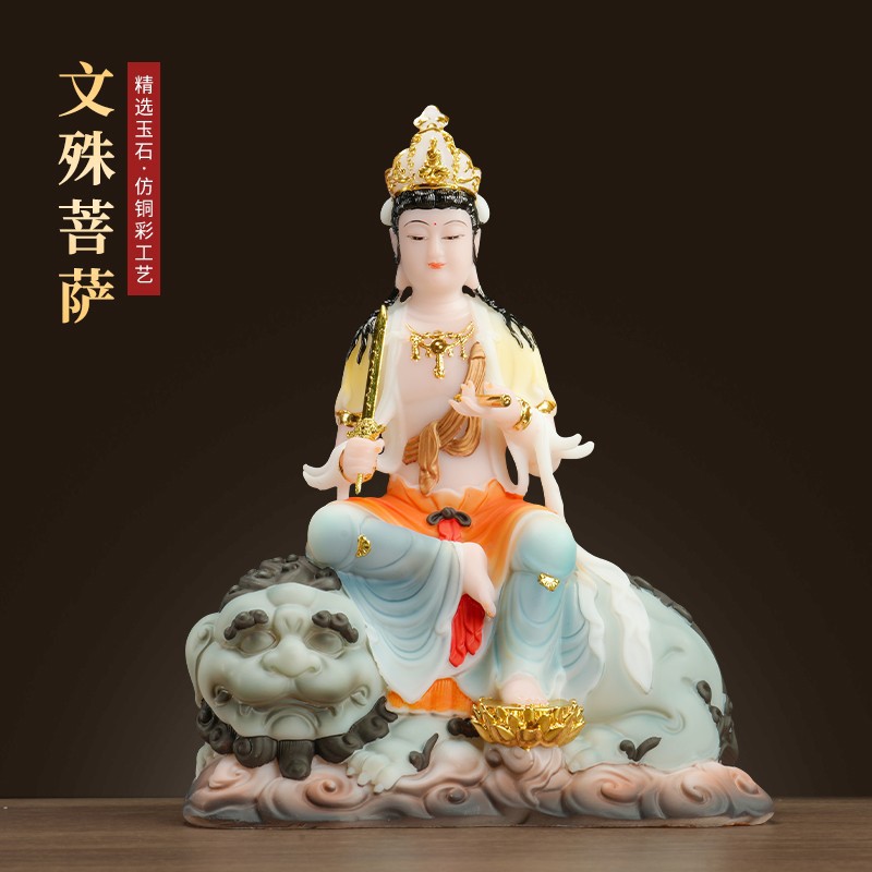 文殊菩薩仏像金榜題名16寸文殊普賢菩薩坐像漢白玉華厳三聖置物