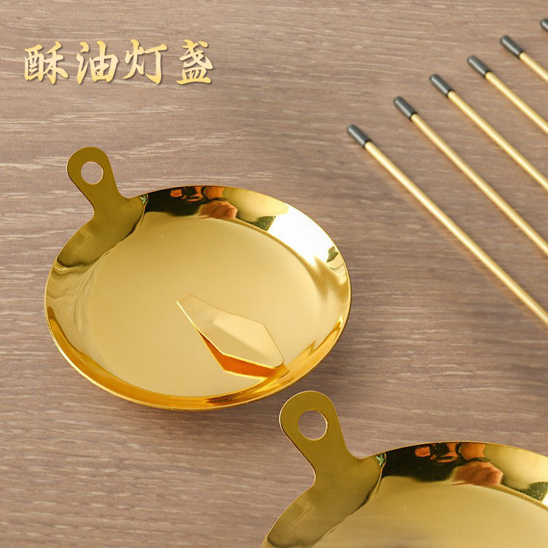 ステンレスのメレンゲのランプの杯は長い明かりの仏陀を供えて明かりの家庭用の明かりの芯に油の皿のろうそくの仏具の用品を入れます。