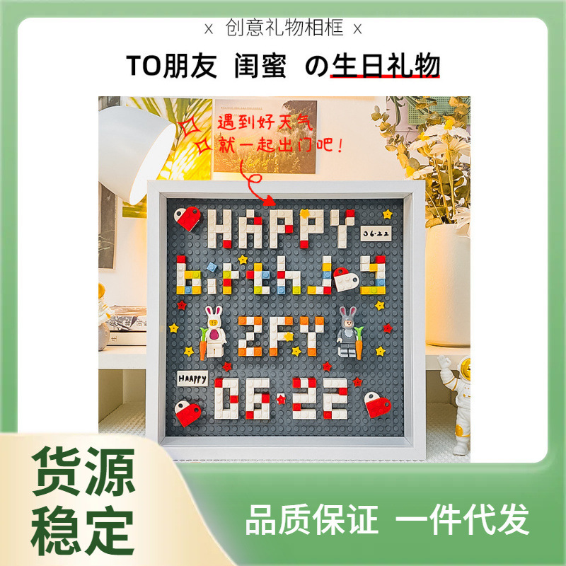 包郵便diy手作り積み木フォトフレームは男女の友人の誕生日プレゼントカップル結婚記念日バレンタインデーを送る