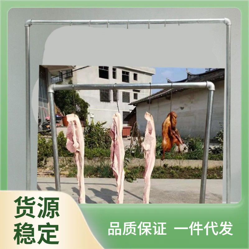 家庭用ベランダの冷たいソーセージとハムと豚肉の置物を干します。
