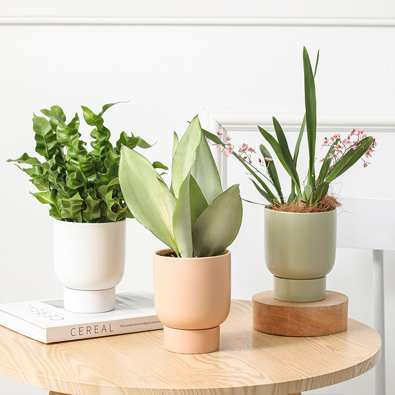 北欧の植木鉢の創意は簡単で白い陶磁器の小さい植木鉢はトレーを持って室内の緑を植えて多肉の陶磁器の鉢を植えます。