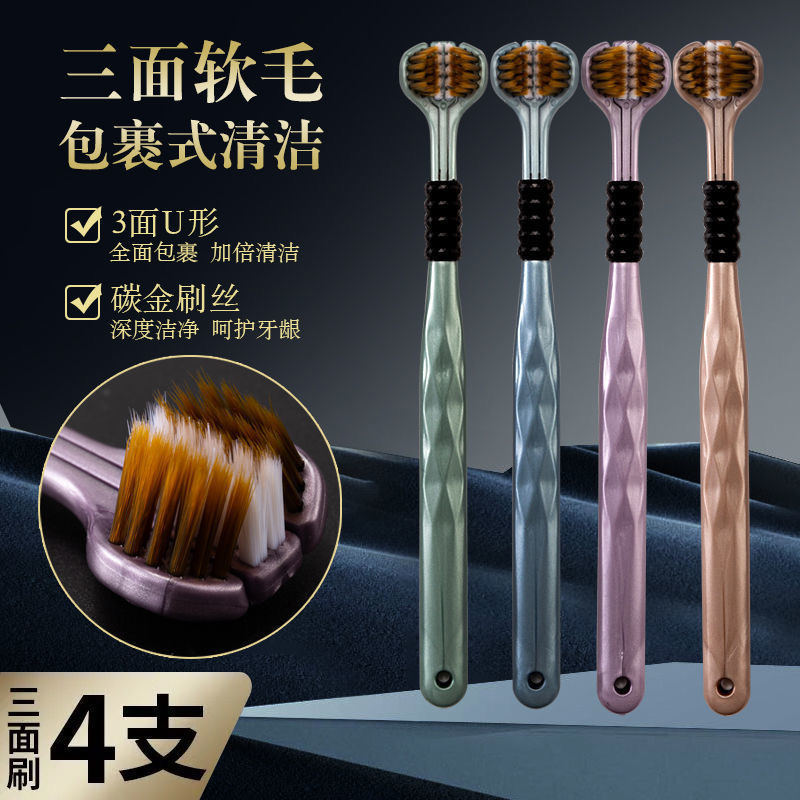 メーカー三面包み家庭用歯ブラシ正規品卸売U字型三面三頭柔らか毛舌苔スクレーパー歯ブラシ大人用