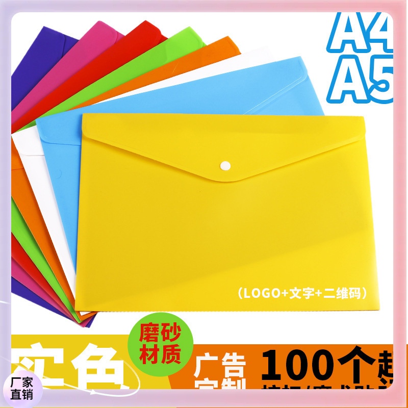 A5 ▧ ソリッドカラースナップボタンファイルバッグ卸売情報バッグつや消し契約書A4大容量透明pp非収納増粘