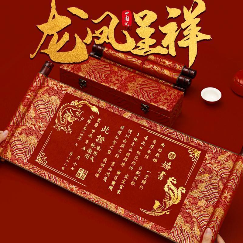 中国のレトロな空白スタイルのローリングスクロール雰囲気の就職状結婚式のお祝い中国の手書きの高度な結婚式の婚約招待状