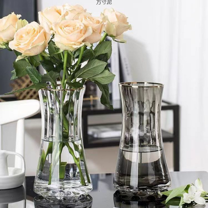 透明な水栽培の富の竹リビングルームの装飾品花ガラス花瓶フラワーアレンジメントシンプルな卸売インスタイルライト高級厚み