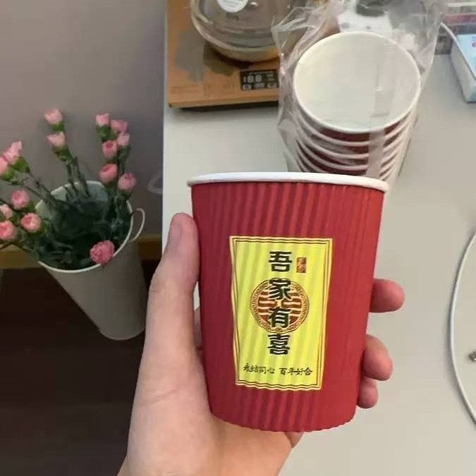 結婚式のお祝いカップ、結婚式用品、厚みのあるお茶、ウェディング段ボール紙の赤い紙コップ、使い捨ての結婚式の宴会用ウォーターカップ