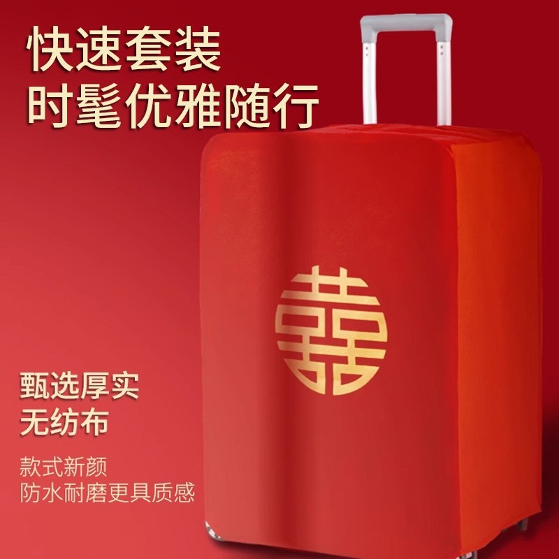 赤いスーツケースウェディングカバースーツケースダストバッグ保護カバー用品パスワードドーナツカバーウェディングボックスハッピーワード