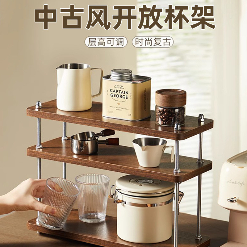 ミドルシェルフデスクコンパートメント棚コーヒーラックティーカップアンティークデスクトップストレージワークステーションティーセットキッチン