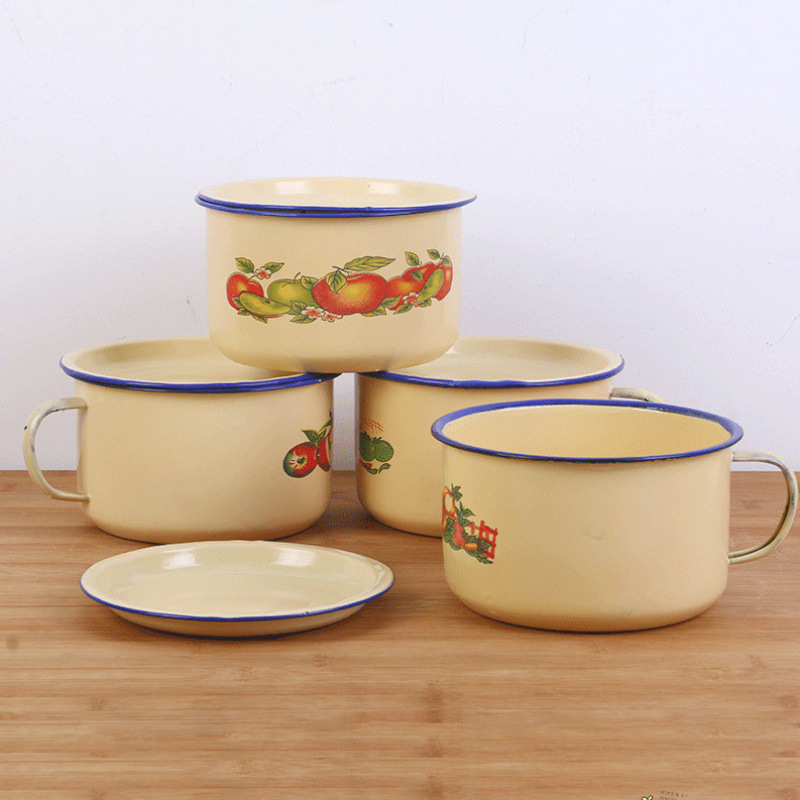 弁当箱、ファーストフードカップ、エナメル昔ながらの成人学生エナメルボウル、蓋付き、大型ライスボウル、インスタントラーメンボウル、エナメルボウル
