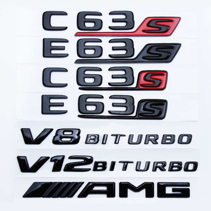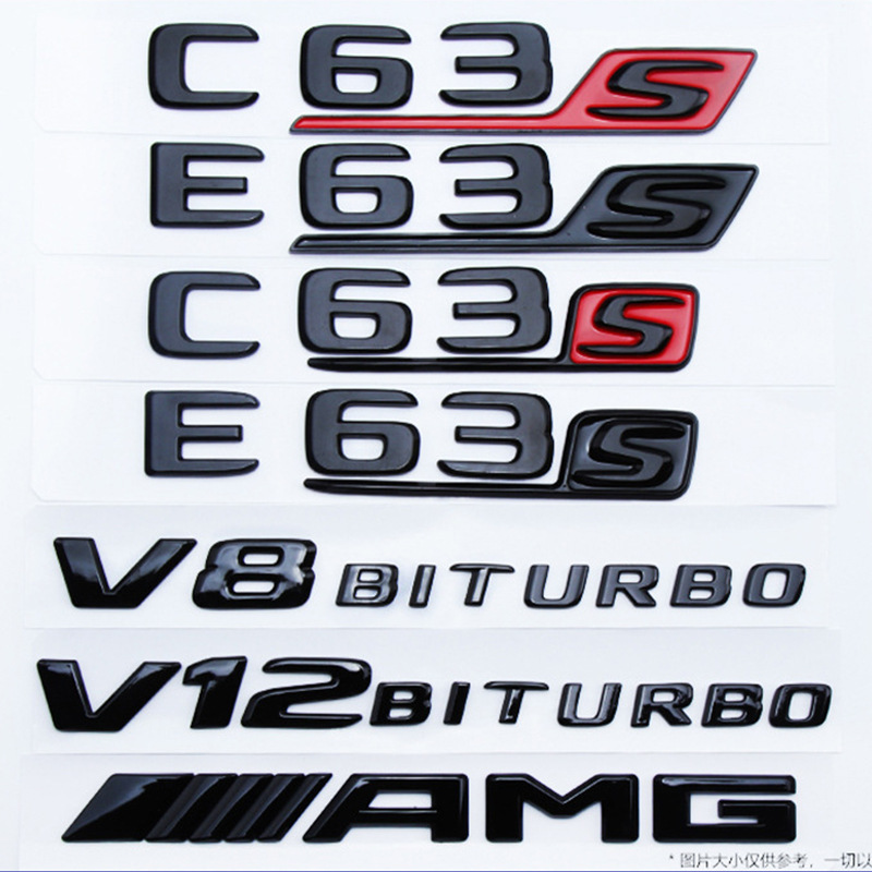 ベンツc級c 63s車の標識c 43 e級e級e 63s v 8v 12葉子板の明るい黒色amgラベリングに適用します。
