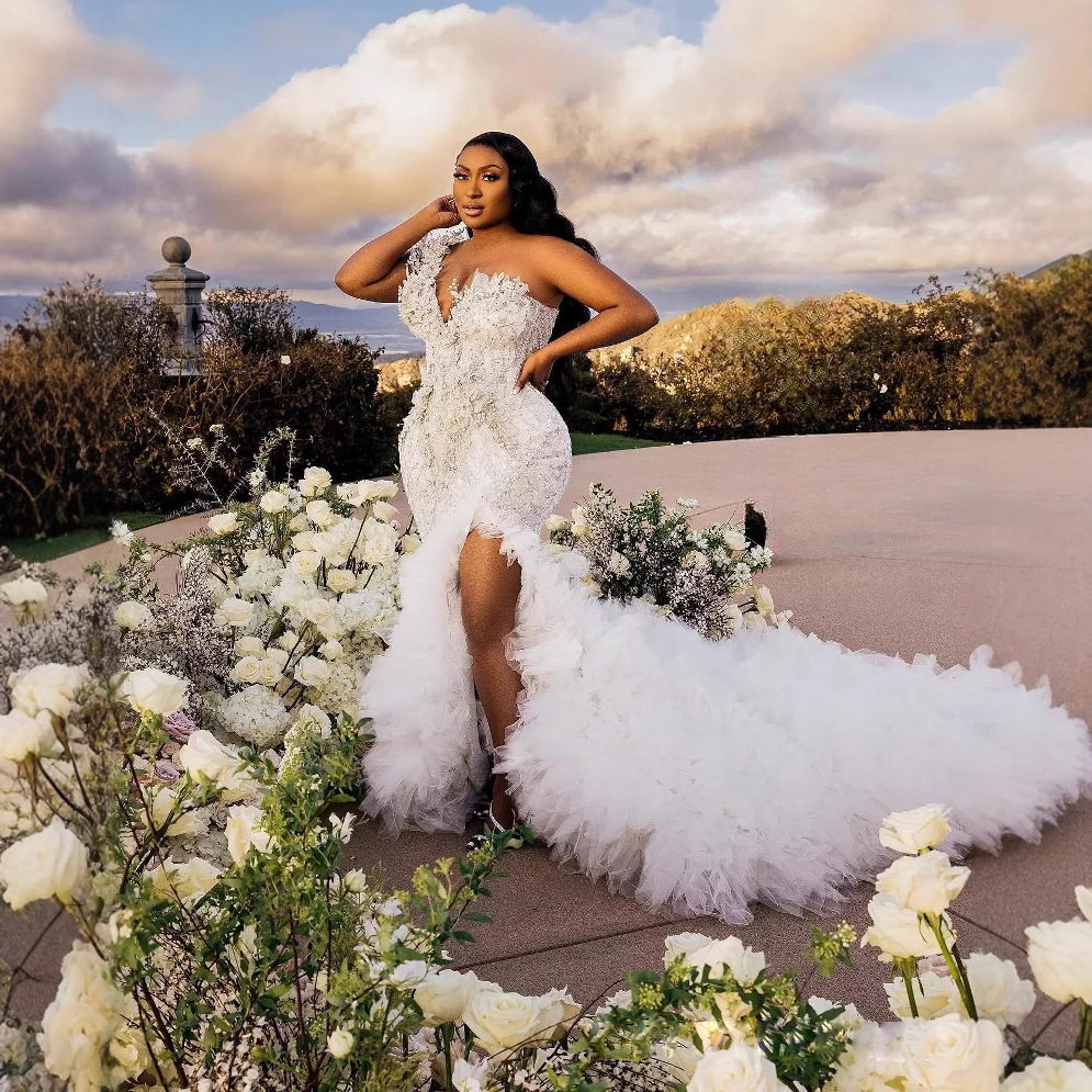 長袖アフリカの花嫁のウェディングドレスウェディングレースフィッシュテールウィッシュヨーロッパとアメリカのワンショルダークロスボーダーアマゾン貿易供給