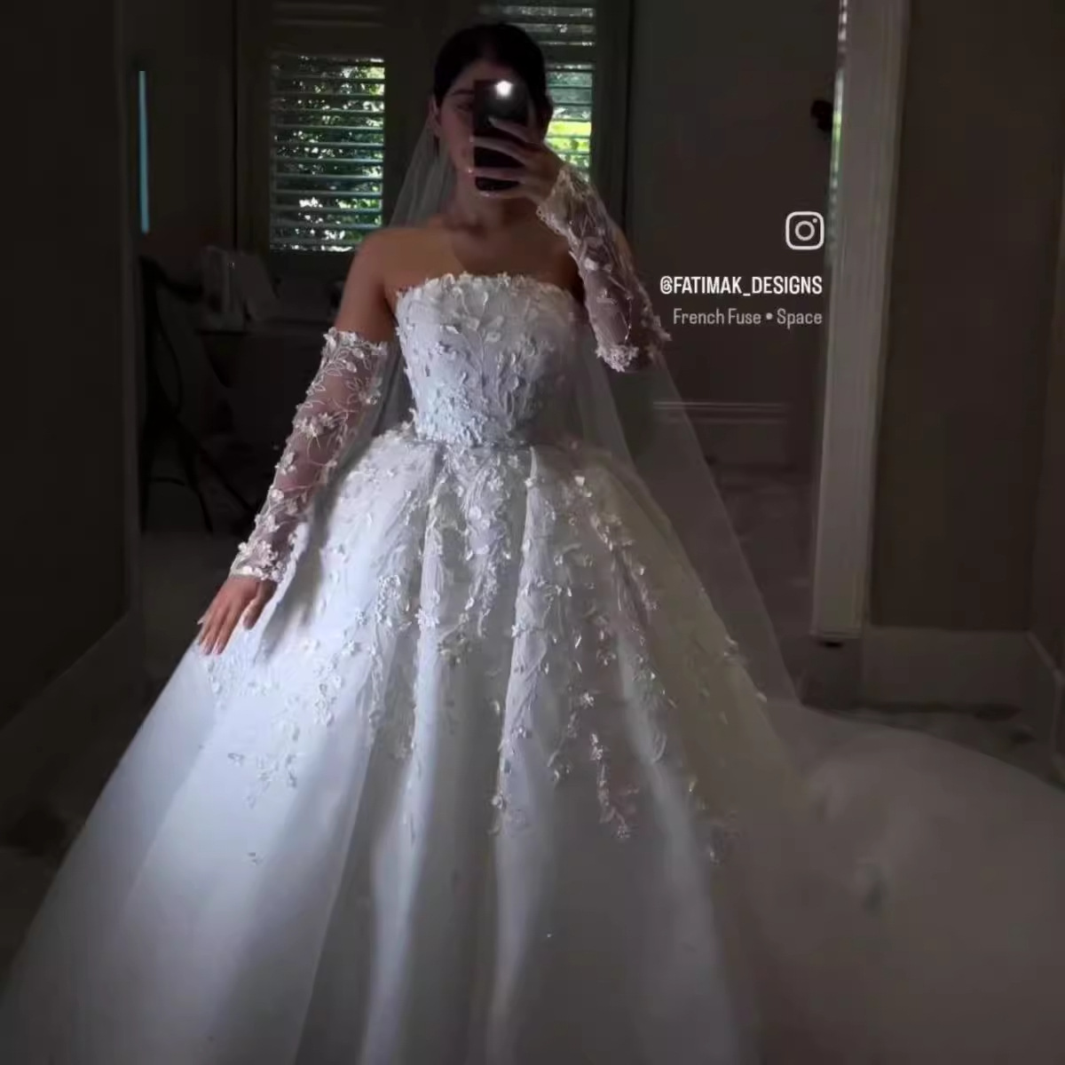 貿易レースのウェディングドレス 2025 新しいスタイルの花嫁気質フォレストスタイル長袖ウェルカムウェディングドレス女性のためのハイエンドフィッシュテールドレス