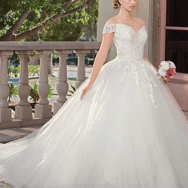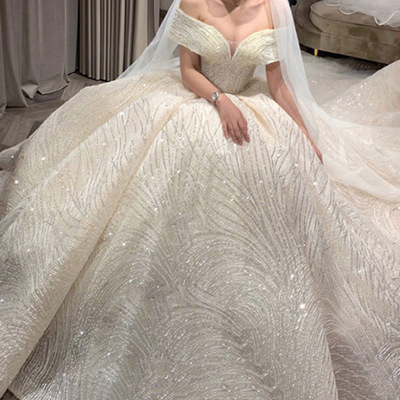 ウェディングドレスの対外貿易花嫁2024春の新型の肩の長袖レースの蓬蓬紗花嫁の尾引きウェディングドレス