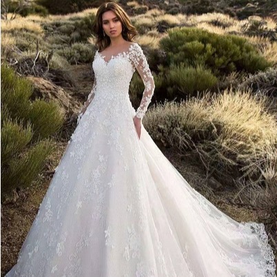 2024欧米の対外貿易クロスボーダーの新しいウェディングドレスアマゾンのセクシーレースの肩の長袖のウェディングドレス