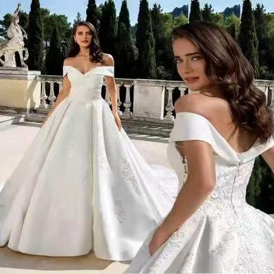 卸売り2024春の新型一字肩ファッションセクシーで痩せたレースのウェディングドレス