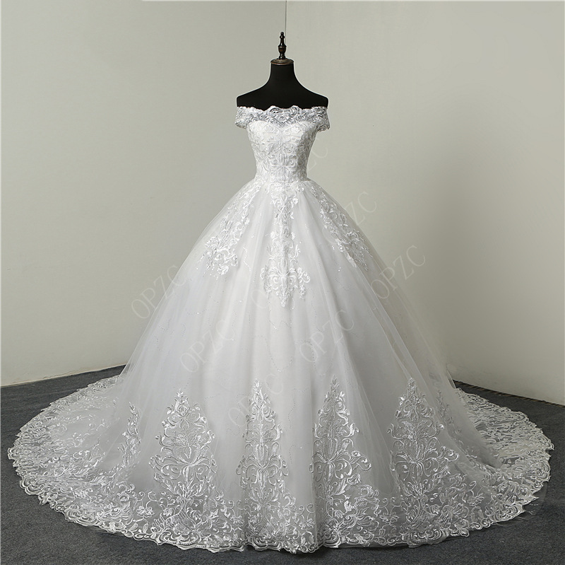 国境を越えた欧米の新型の山の袖の新婦のウェディングドレスの肩が露出しています。